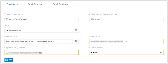 Registrieren Sie eine Anwendung in Microsoft Entra ID mit der von der Pier4Voice Telefonanlage bereitgestellten Redirect-URI und rufen Sie dann die Authentifizierungsinformationen für die SMTP-Einstellungen der Telefonanlage ab.