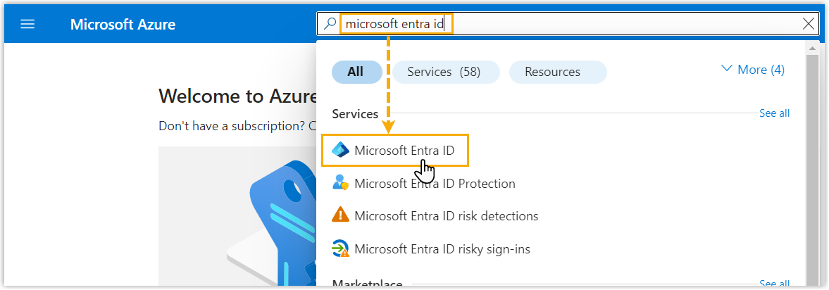 Suchen und wählen Sie in der Suchleiste den Dienst Microsoft Entra ID, um das Verzeichnis Ihrer Organisation aufzurufen.